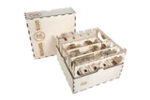 The Rising Sun Core Box organizer has 11 removable trays. The 7 miniatures trays feature our new acrylic spring clips that securely hold your miniatures, protecting painted minis! 5 are identical clan trays that hold everything you need for each clan. The miniature slots are labeled for daimyo, shinto, and bushi minis so there€s no guessing where each one goes. The clan tray bin holds all the each clans alliance token, stronghold tokens, clan markers and monster bases. The trays can fit the Kickstarter exclusive upgraded strongholds and alliance tokens. Except the upgraded Turtle clan strongholds which are stored with the Kami shrine tiles in a separate tray. The 2 monster trays feature the same acrylic spring clips to keep the minis in place. They are also labeled with the monster€s names and numbers on the bottom of their bases for quick and easy clean up. The adjustable season card tray gives you the option to sort your cards by season or symbol set. The battle tray holds the political mandate tiles, political/war tiles, war province and war number tokens, this tray also supports the Kickstarter upgraded political mandate tiles and war number plastic flags.