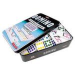 Are you ready for a game of dominoes? Try to be the first to play all your dominoes and you will be the winner! Game includes 55 dominoes, with color dots, and features a durable tin package with a window.