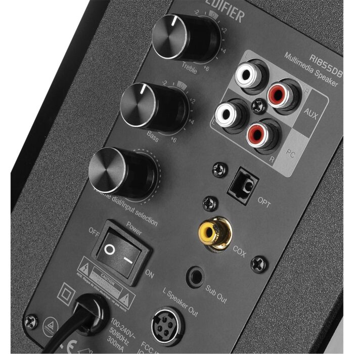 The R1855DB comes with a fully featured remote for the set of bookshelf speakers. Adjust the volume, switch inputs, mute the speakers and control Bluetooth connected playback all from your fingertips. The design of the remote with its modern sleek feel puts the power in your hands. Its easy to use and fits right in the palm of you hand providing the ultimate comfort. Edifier makes it easy on you with the simple remote commands for the R1855DB bookshelf speakers. Inputs are accessible with clear and concise functionality complimenting the manual.