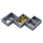 The trays are arranged in up to three layers, with the main part of the insert taken up by a large card tray. Both the card trays have space for sleeved cards.