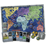 Centuries have passed and the world is again at war. Mechanical warriors are now fighting for us. Our human commanders lead them and guide them, but the bloodless armies battle in our stead.On the Earth and below its surface as well as on the Moon, the war rages. When the dust settles, only one will emerge the victor. The world is at war and you are the commander of one of the warring factions. You control the destiny of your people, your homeland, and your planet. On and above the Earth you must marshal your forces, send forth your troops, hire the right commanders, and crush your enemies. Features Risk gameplay with some new twists! Mechs, underwater & moon locations, commanders! Gameplay lasts exactly 5 turns, which will last 2-3 hours. Can use the components in the box to play classic Risk rules! Quality of life updates to components (double sided tokens and moon board, and resealable plastic bags). Bringing back this beloved version of Risk for today’s gamer! Contents 1 Earth Game Board 1 Moon Game Board 1 Score Chart 5 Six-sided Dice (2 white and 3 black) 5 Eight-sided Dice (2 white and 3 black) 44 RISK Land Territory Cards 13 RISK Water Territory Cards 14 RISK Lunar Territory Cards 5 Sets of MOD Armies (each a different color) 5 Sets of Commanders (Land, Naval, Space, Nuclear, and Diplomat—each set a different color) 20 Space Stations (4 each of 5 colors) 20 Land Command Cards 20 Naval Command Cards 20 Space Command Cards 20 Nuclear Command Cards 20 Diplomat Command Cards 9 Blank Command Cards 4 Devastation Markers 5 Turn Order Markers 1 Year Marker 65 1-point Energy Chips 15 5-point Energy Chips HPD21