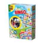 Travel window sticker bingo comes in a set of six different bingo cards and 64 window stickers. The stickers are easy to reuse.