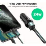 The UGREEN Dual-Port Car Charger stands out with its high-quality material. Even on bumpy roads, this charger ensures the fastest possible charging speeds, delivering a total of 4.8 amps across its two ports.