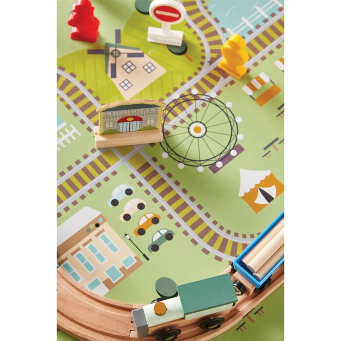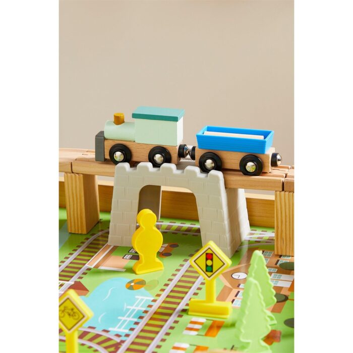 This extraordinary set isn’t just a toy it’s a journey through railways and creativity. With 50 pieces and a reversible table, it becomes a gateway to both imaginative play and skill-building.