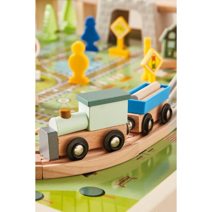 Watch as conductors of all ages immerse themselves in the excitement, crafting unique train routes and exploring new destinations. Elevate playtime with the 100-Piece Reversible Train Table.