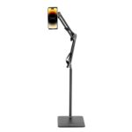 XO-C137 adjustable carbon steel floor stand device holder, reaches up to 135cm, perfect for photos, videography, vlogging, and livestreaming. Rotating bracket allows for both portrait and landscape positioning.